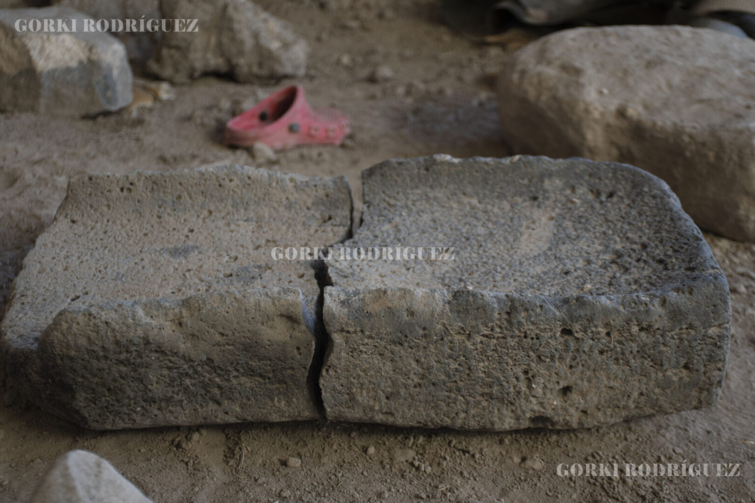 Junto a las chozas se han recuperado morteros de piedra basáltica de tamaño medio (30–40 cm de diámetro), con evidencias de uso en molienda fina. Las huellas de abrasión indican el procesamiento de semillas duras, raíces y pigmentos minerales, probablemente usados tanto para alimentación como para usos rituales o medicinales.