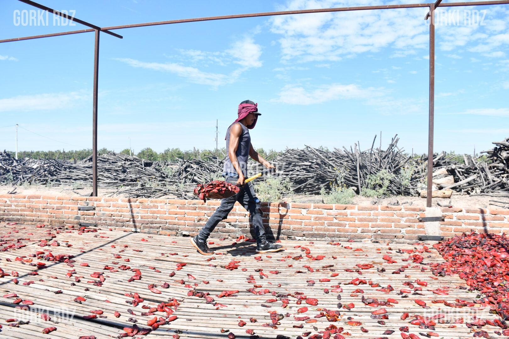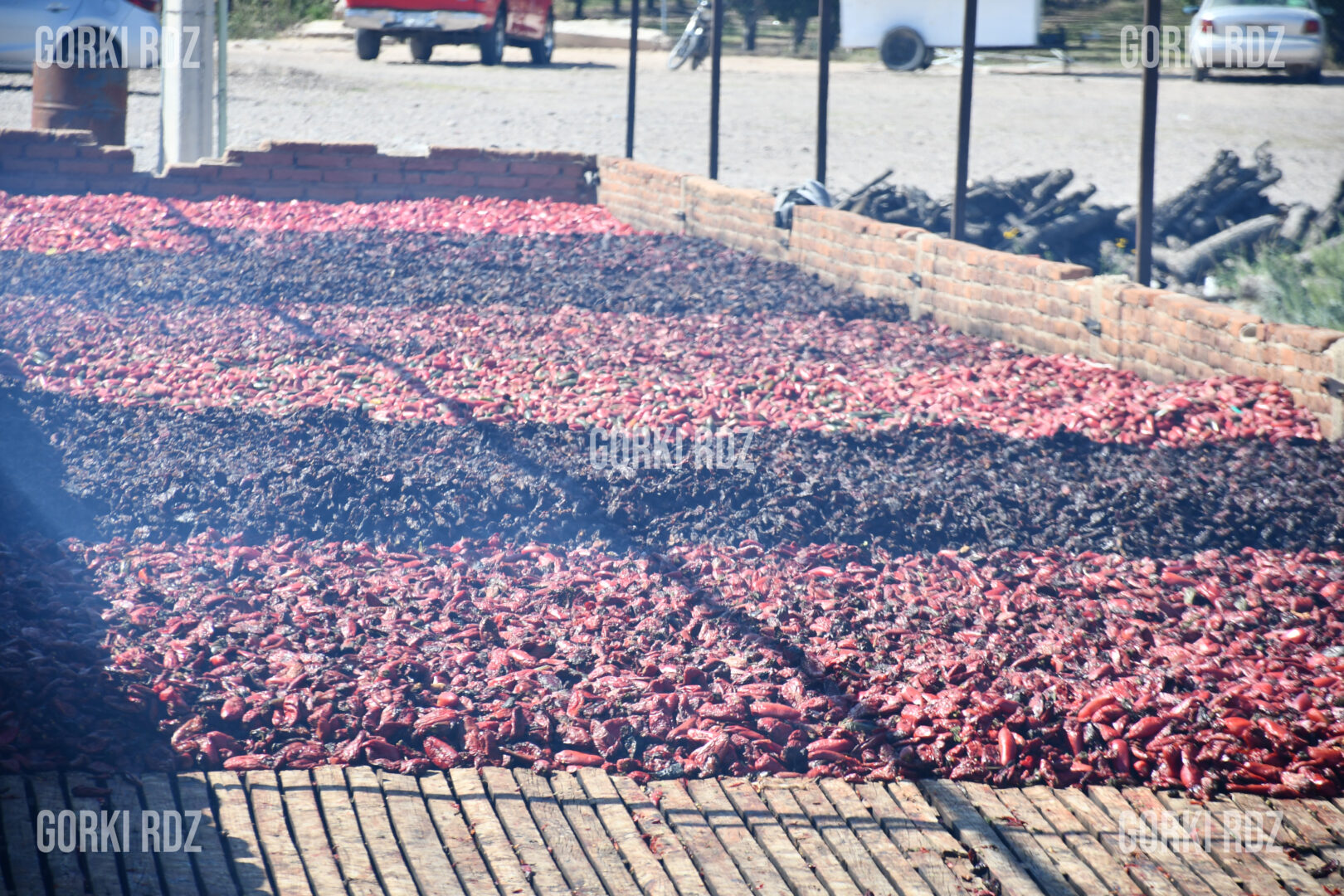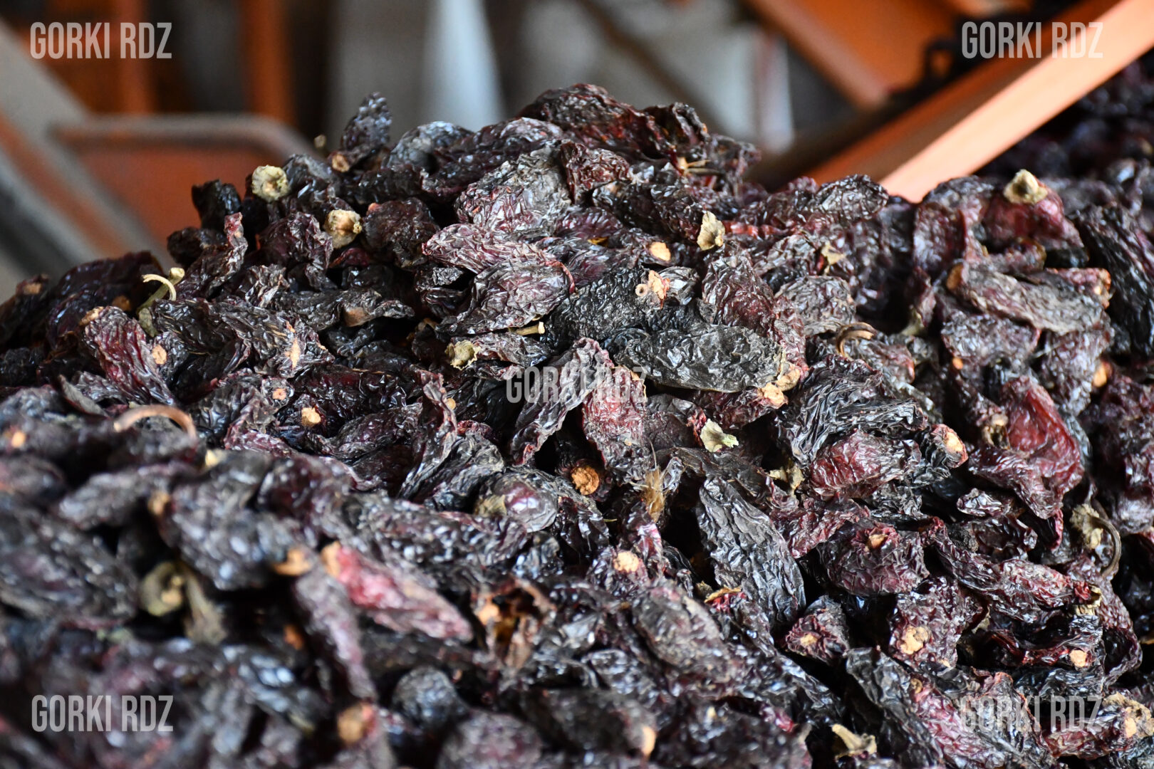 El humo del nogal, madera abundante en la región, impregna lentamente el chile durante días. Es un trabajo que no se improvisa ni se deja la azar: los chiles se colocan en hornos que cargan entre dos y tres toneladas de producto fresco y se remueven constantemente para que la cocción sea pareja.
