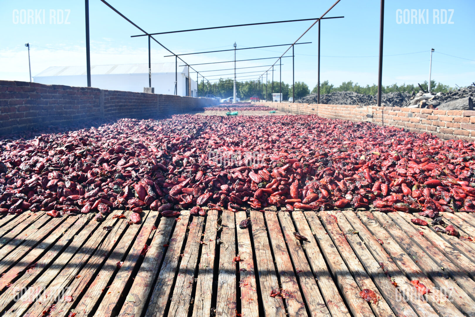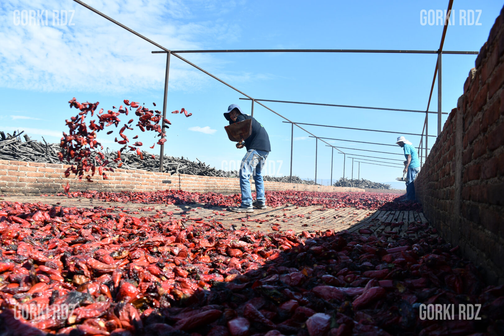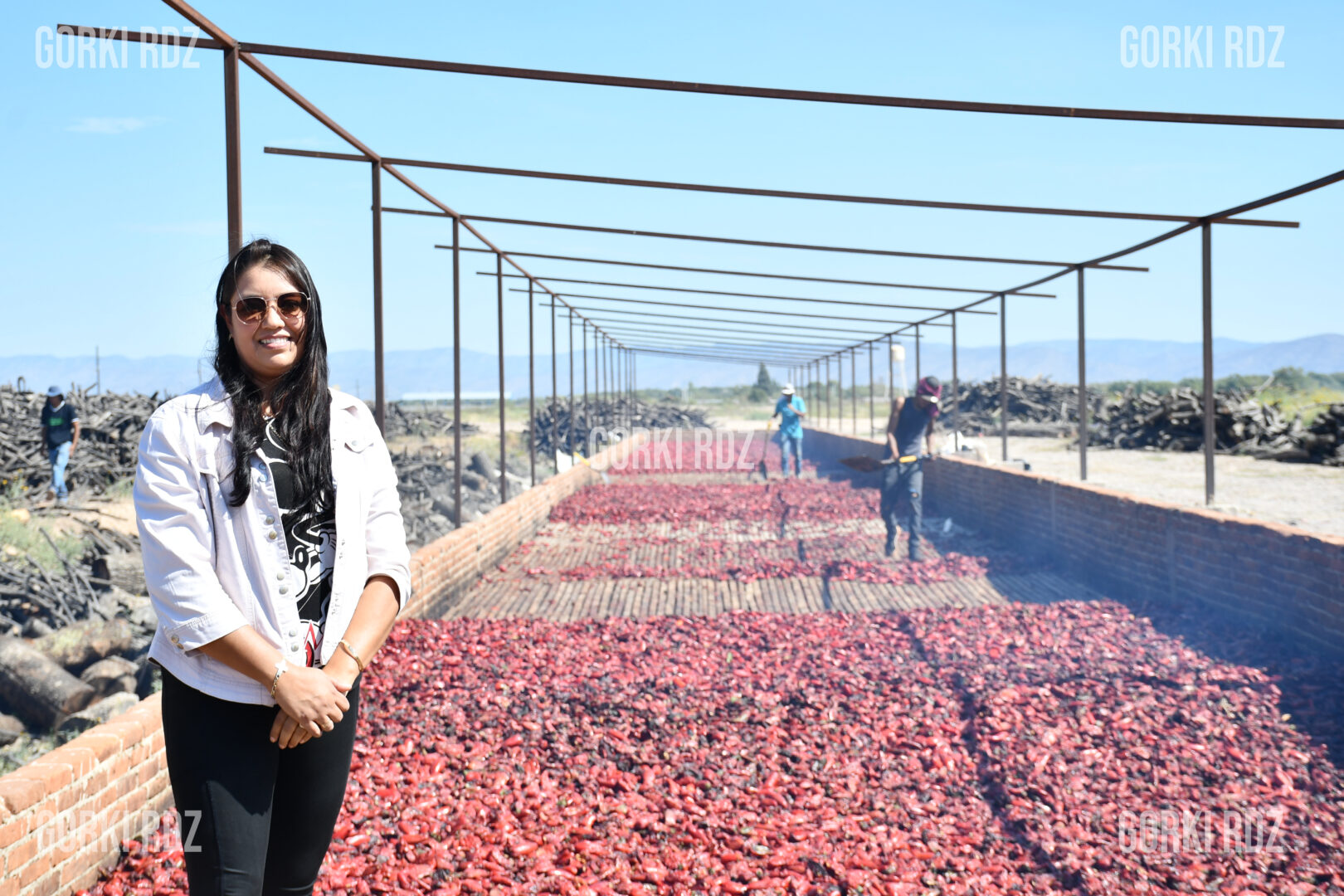“Nosotros manejamos aquí el chile jalapeño, que es el que prácticamente se cosecha en la región”, explica Arlet mientras recorre hornos al aire libre cargados de chile rojo.