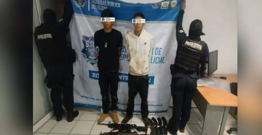 GUACHOCHI, CHIH.— Dos jóvenes identificados como Edwin Javier A. M. y Juan Arturo P. P., ambos de 18 años, fueron detenidos el pasado jueves en Guachochi tras ser señalados como integrantes del grupo delictivo La Línea y responsables de la privación ilegal de la libertad de dos trabajadores de una gasolinera.