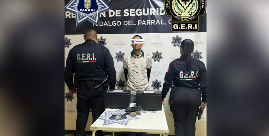 PARRAL, CHIH.— Elementos del Grupo Especial de Reacción Inmediata (GERI) de la Dirección de Seguridad Pública Municipal (DSPM) detuvieron a un hombre identificado como Samuel R. E., en la colonia Ampliación Che Guevara, luego de encontrarle en posesión artículos vinculados a un reporte de robo ocurrido en la colonia Almanceña.