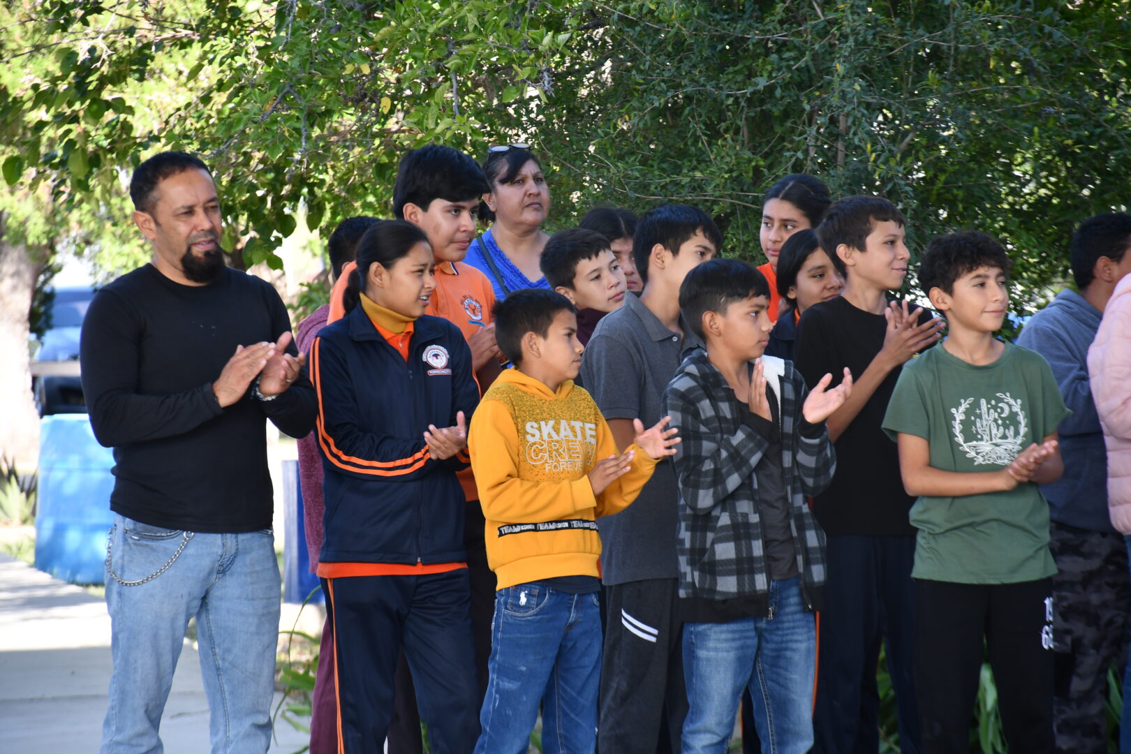 “Estamos aquí en Torreoncito entregando 139 uniformes, y de aquí seguimos a Miramontes. La idea es que ningún estudiante se quede sin uniforme”, afirmó Francisco Muñoz Velázquez mientras saludaba a alumnos, docentes y padres de familia.