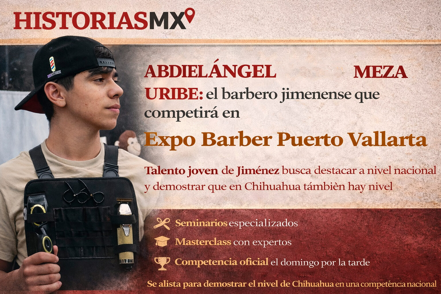 HISTORIASMX. – Con apenas tres años y medio de experiencia en la barbería, el joven talento Ángel Abdiel Meza Uribe se prepara para uno de los retos más importantes de su carrera: participar en la Expo Barber Puerto Vallarta, un evento nacional que reunirá a barberos de distintos puntos del país en seminarios, masterclass y competencias de alto nivel.