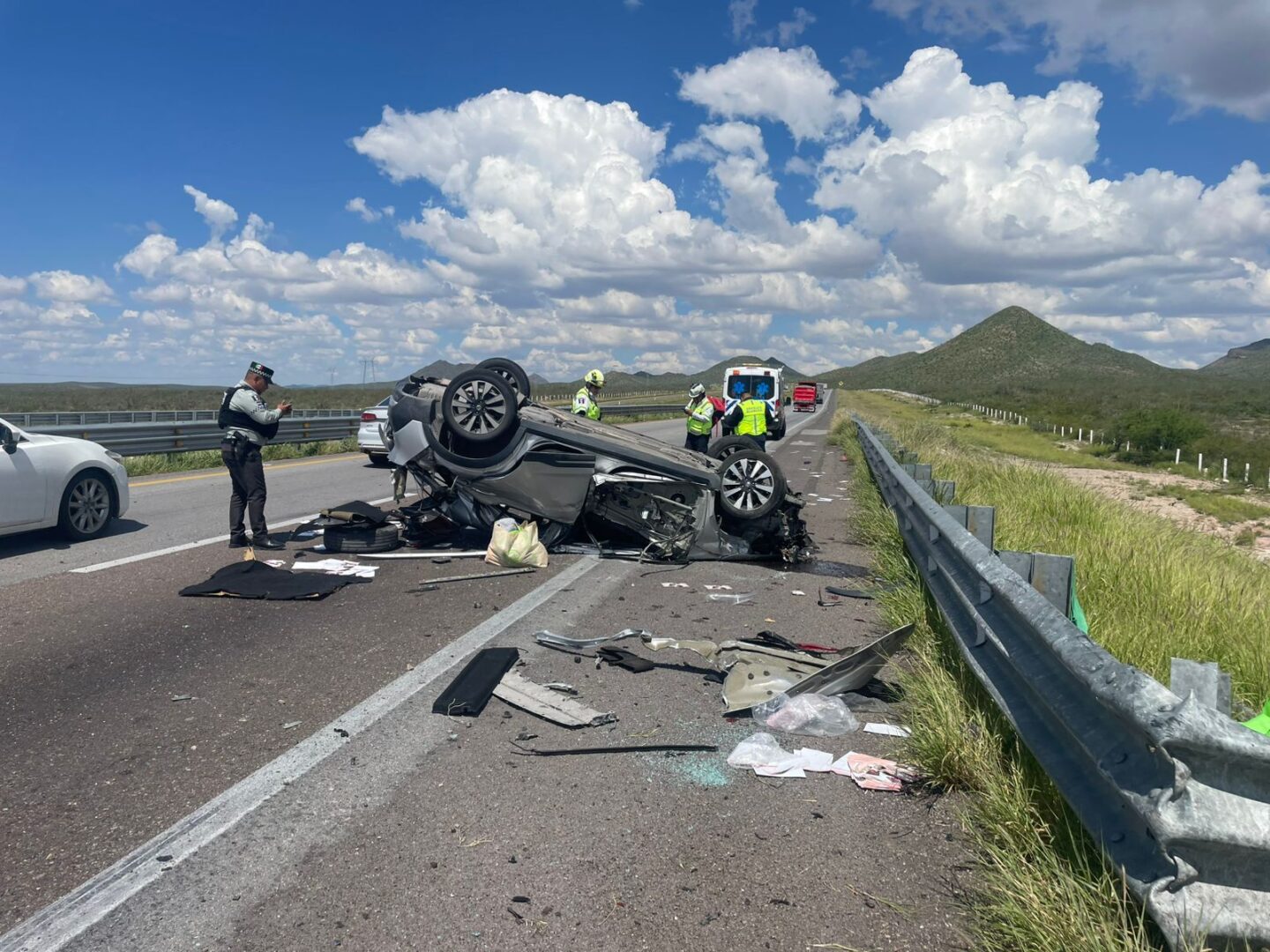 HISTORIASMX.- Una aparatosa volcadura se registró en la autopista Jiménez–Torreón, a la altura del kilómetro 181, donde un hombre resultó lesionado.