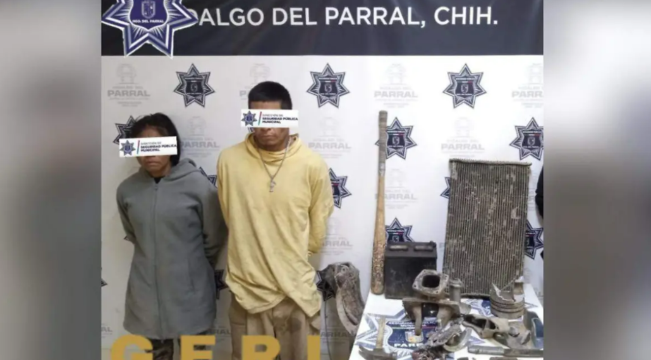 HISTORIASMX. — Elementos del Grupo Especial de Reacción Inmediata (GERI) de la Dirección de Seguridad Pública Municipal de Parral aseguraron diversas autopartes y pusieron a disposición a un hombre y una mujer tras una intervención preventiva realizada en el asentamiento San Andrés.