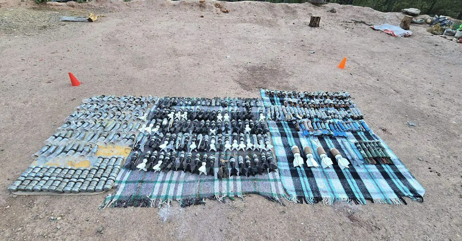 HISTORIASMX. – Autoridades militares informaron que 292 artefactos explosivos improvisados, presuntamente adaptados para ser lanzados mediante drones, fueron asegurados durante un operativo realizado en la región serrana que divide a los estados de Chihuahua y Sinaloa, donde además fueron detenidos nueve civiles armados.