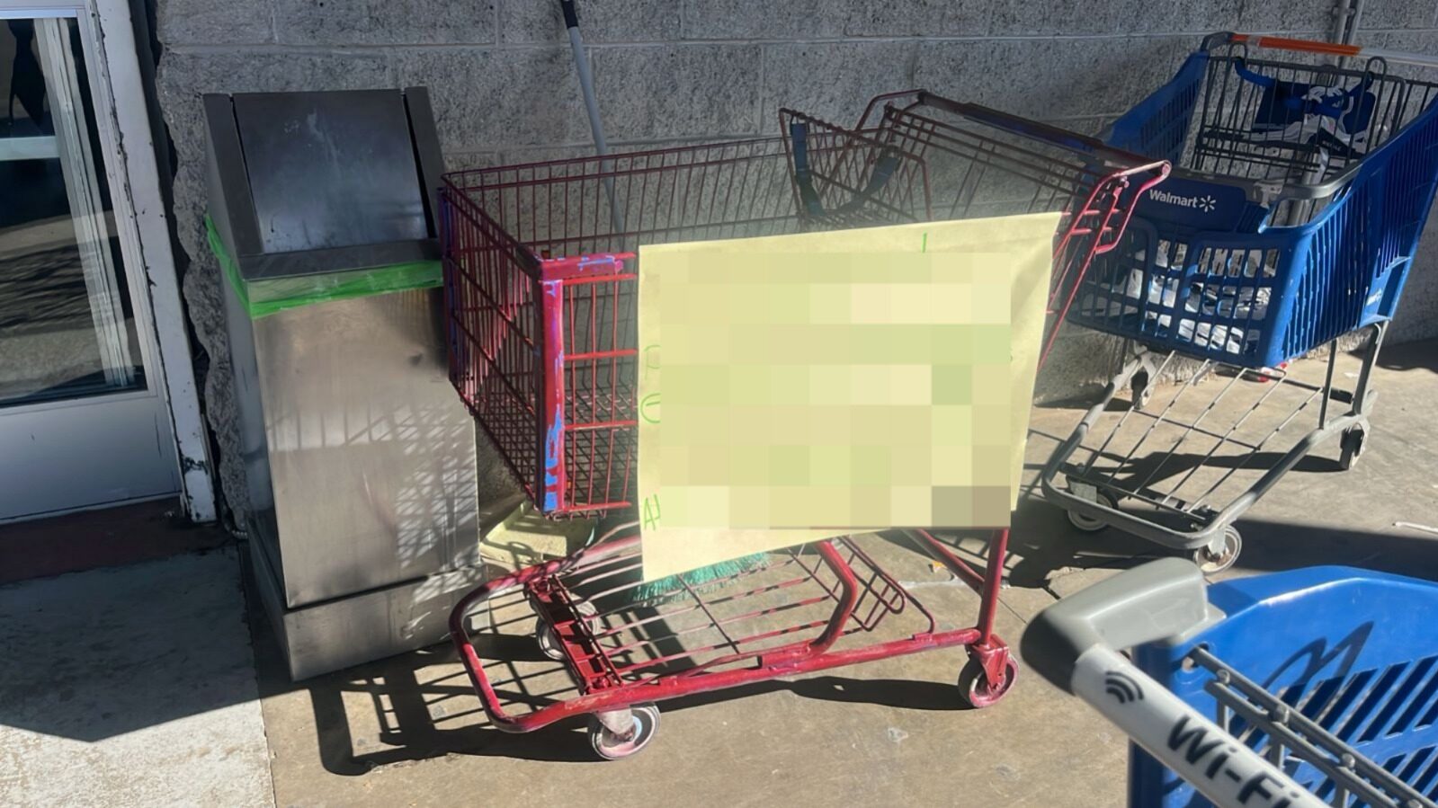 Además, el carrito presentaba pintas realizadas aparentemente con pintura en aerosol color rojo.