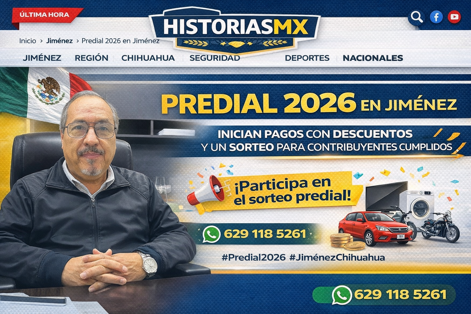 Jiménez, Chihuahua.– El Gobierno Municipal de Jiménez, a través de la Tesorería Municipal, dio a conocer que desde el mes de enero se encuentra abierta la recaudación del impuesto predial correspondiente al ejercicio fiscal 2026, ofreciendo descuentos para los contribuyentes que realicen su pago de manera anticipada.