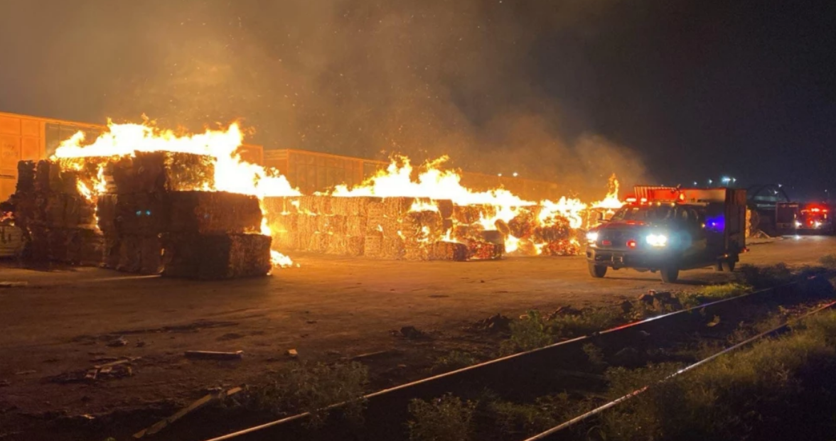 - Un incendio que inició en el área de maleza junto a un canal, el cual pudo haberse propagado hasta alcanzar las pacas de cartón.