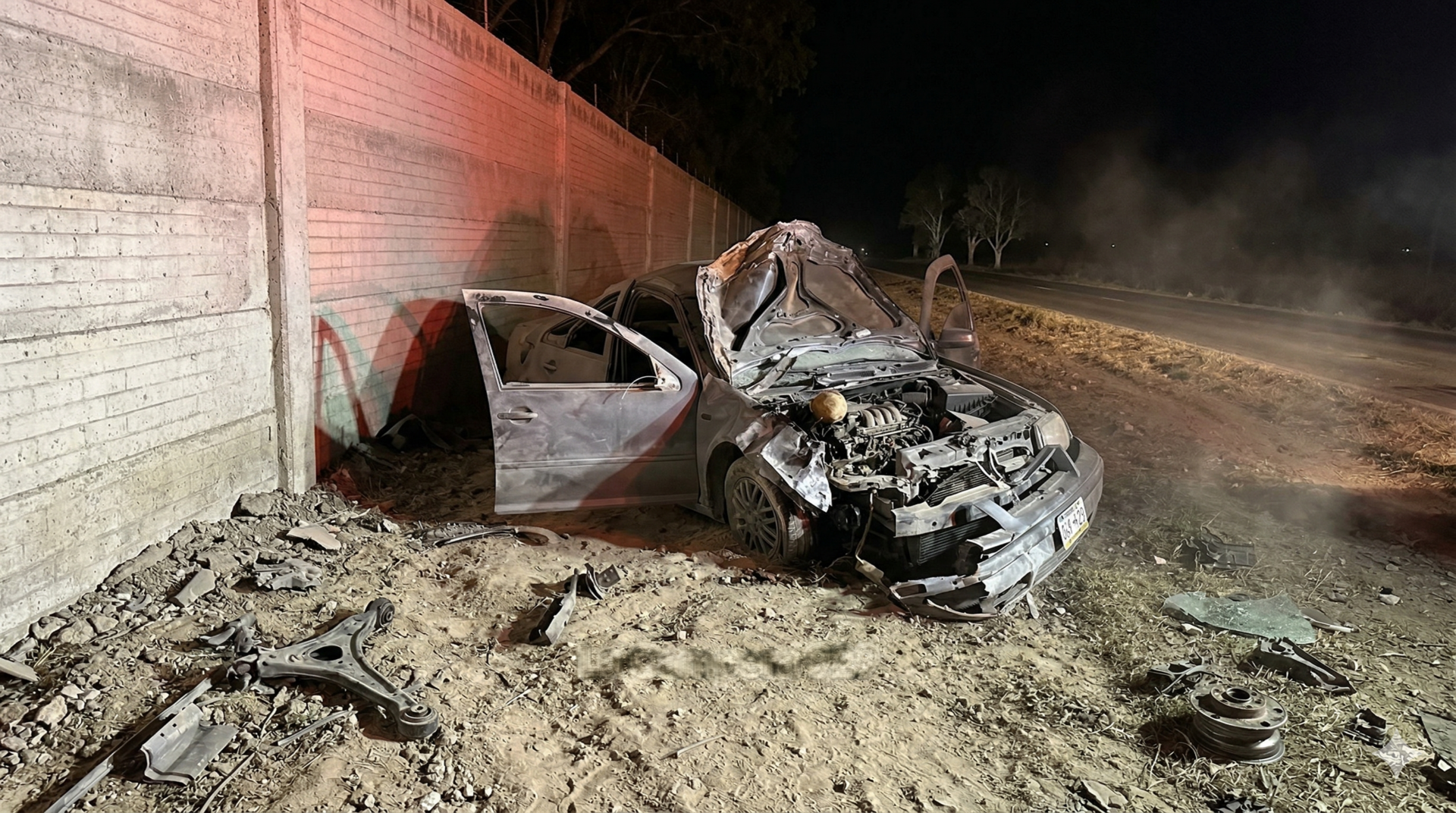 Al arribar al sitio, elementos de Protección Civil localizaron un automóvil Volkswagen Jetta con severos daños, mismo que se encontraba fuera de la carpeta asfáltica tras haber volcado luego del impacto inicial.