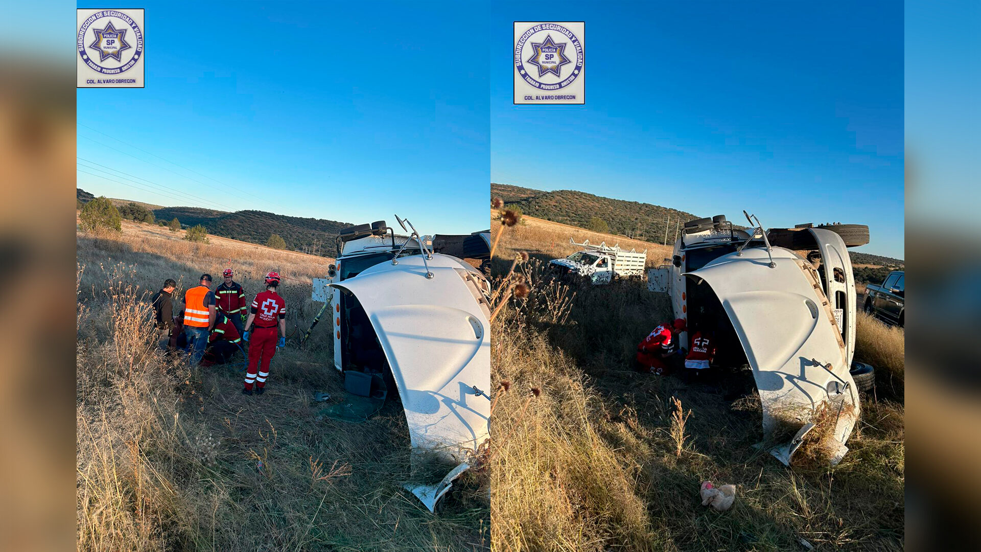 De acuerdo con el reporte, el incidente fue notificado a las 17:20 horas a la Subdirección de Seguridad y Vialidad de Álvaro Obregón, que comisionó de inmediato unidades al lugar. Al arribar, los agentes localizaron una pipa color blanco fuera de la cinta asfáltica, recostada sobre su costado derecho.