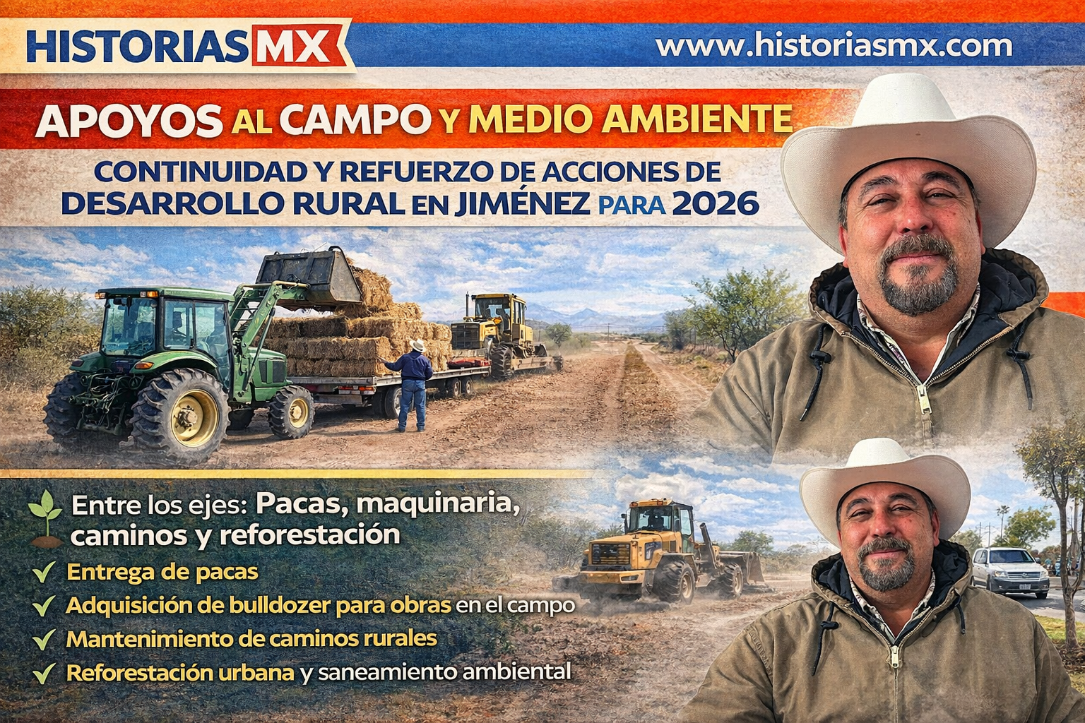 HISTORIASMX. – El Departamento de Desarrollo Rural y Ecología del municipio de Jiménez operará durante 2026 con horarios regulares, continuidad administrativa y una agenda de trabajo enfocada en el fortalecimiento del campo, el apoyo directo a productores y la atención a temas ambientales y urbanos, informó su titular, Jesús Pacheco, durante una entrevista reciente.