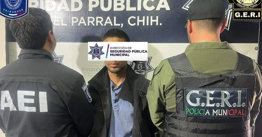 HISTORIASMX. – Elementos de la Dirección de Seguridad Pública Municipal detuvieron a un hombre identificado como Martín M. M., de 31 años, por su probable responsabilidad en los delitos de robo con violencia y portación de arma de fuego, tras un hecho registrado este sábado en la ciudad de Parral, Chihuahua.