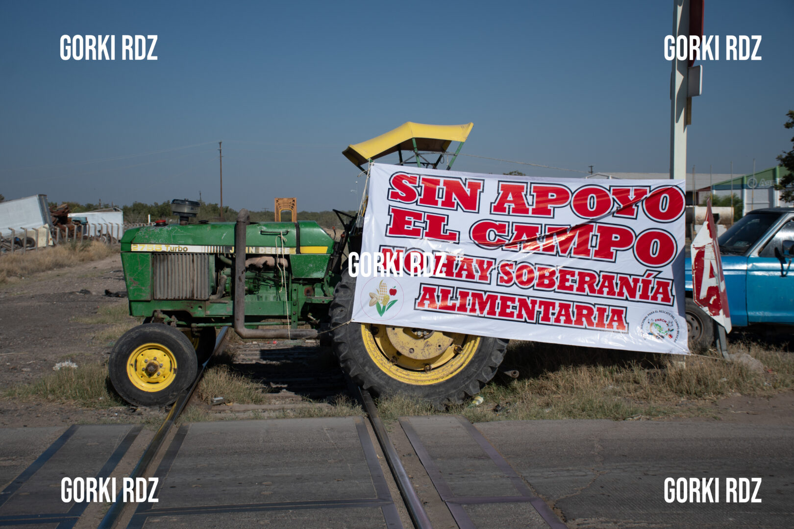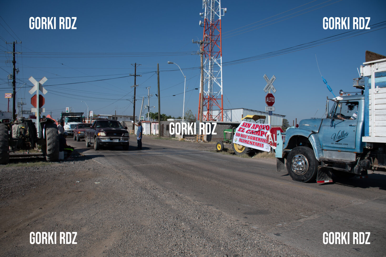 Jiménez, Chihuahua. – A las ocho de la mañana, cuando el sol apenas comienza a calentar el asfalto y el polvo del desierto se levanta con el viento, un grupo de hombres y mujeres se congrega junto a las vías del tren, justo donde la carretera libre Jiménez–Camargo cruza el ramal ferroviario. Tractores, camionetas y algunos bultos de costales forman una barrera improvisada. No hay violencia, pero sí determinación.