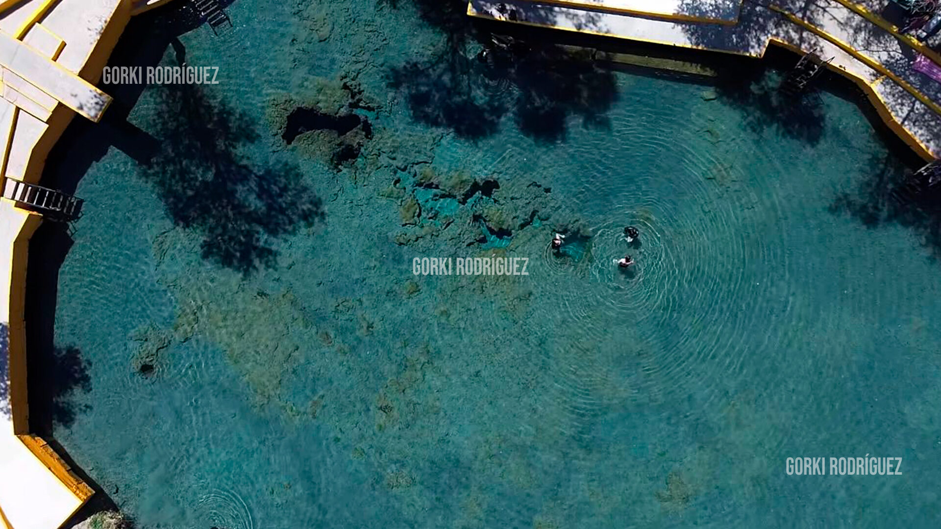 El manantial forma un lago natural que serpentea a lo largo de aproximadamente dos kilómetros, permitiendo a los visitantes encontrar zonas de distinta profundidad para nadar o simplemente relajarse dentro del agua.