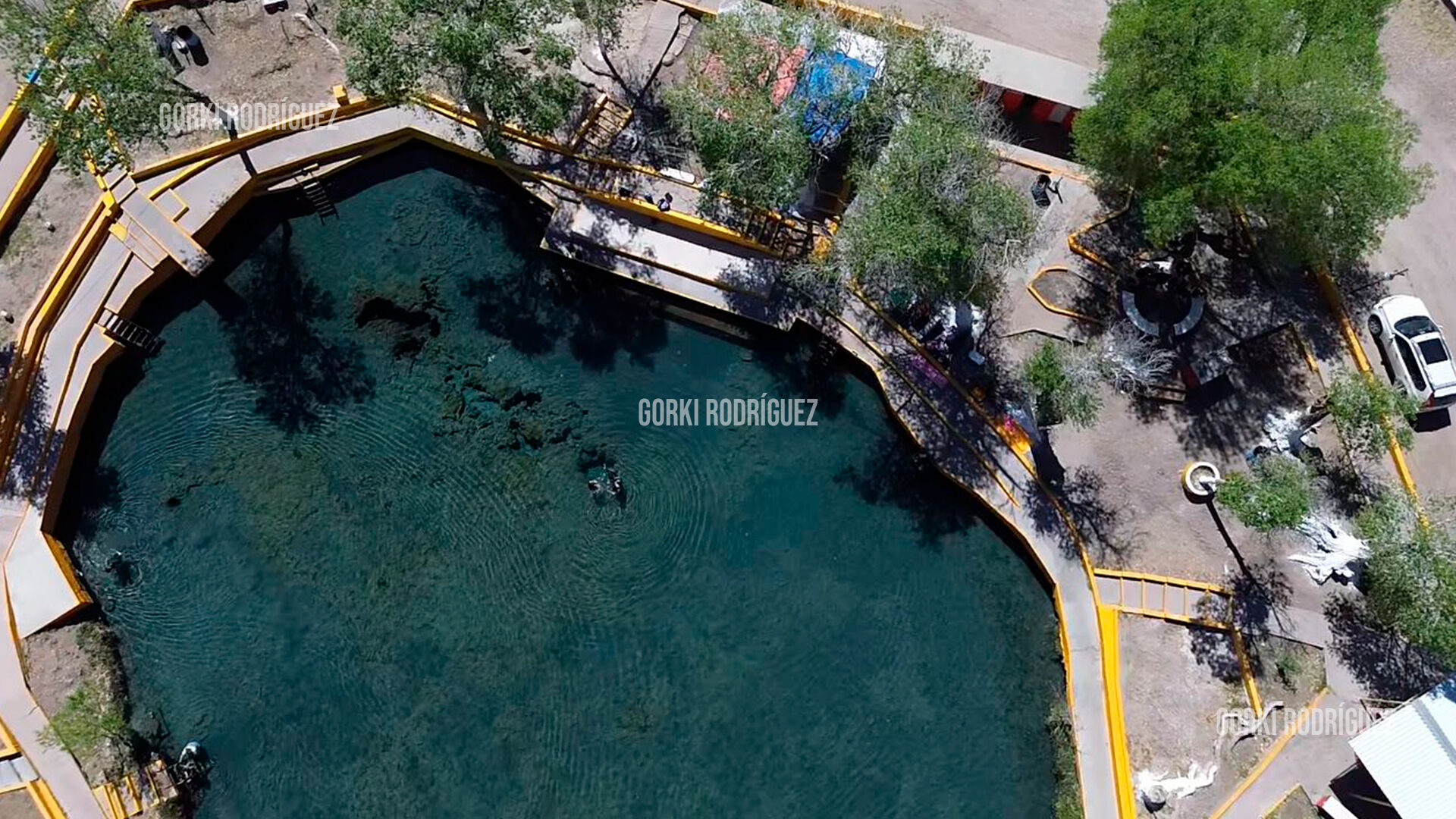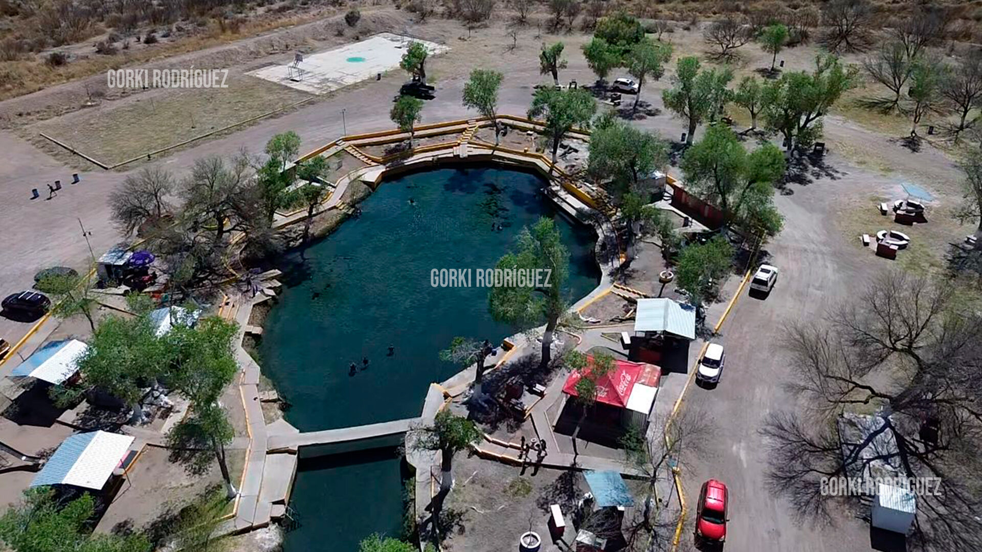 El lugar es reconocido por sus aguas termales cristalinas, que emergen de manera natural desde el subsuelo formando un pequeño lago rodeado de vegetación y sombra natural, lo que crea un contraste singular con el entorno árido característico del sur del estado.