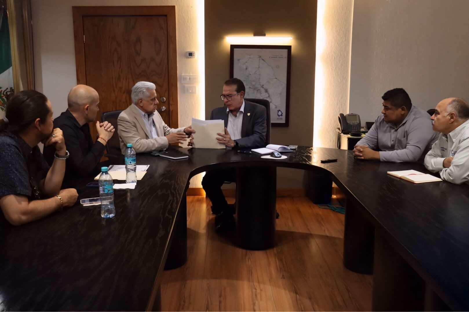 Jiménez, Chih.– En una acción estratégica para mejorar la calidad de vida de las familias de Jiménez, se firmó un importante convenio de colaboración entre la Junta Central de Agua y Saneamiento del Estado de Chihuahua (JCAS) y el Gobierno Municipal de Jiménez, encabezado por el alcalde Pancho Muñoz junto con la comisión de regidores.