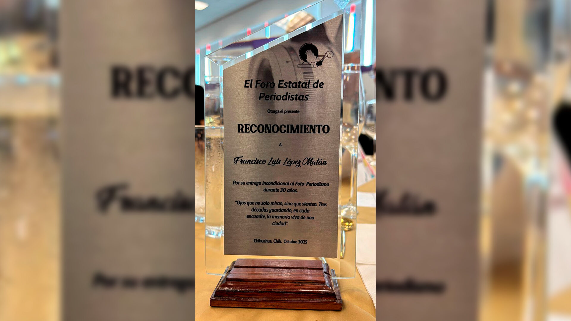 Recientemente en la edición del premio Estatal de Periodismo en el estado de Chihuahua -2025-, José Vasconcelos; Francisco López, recibió un reconocimiento, por sus más de 30 años de trayectoria como Fotoperiodista.