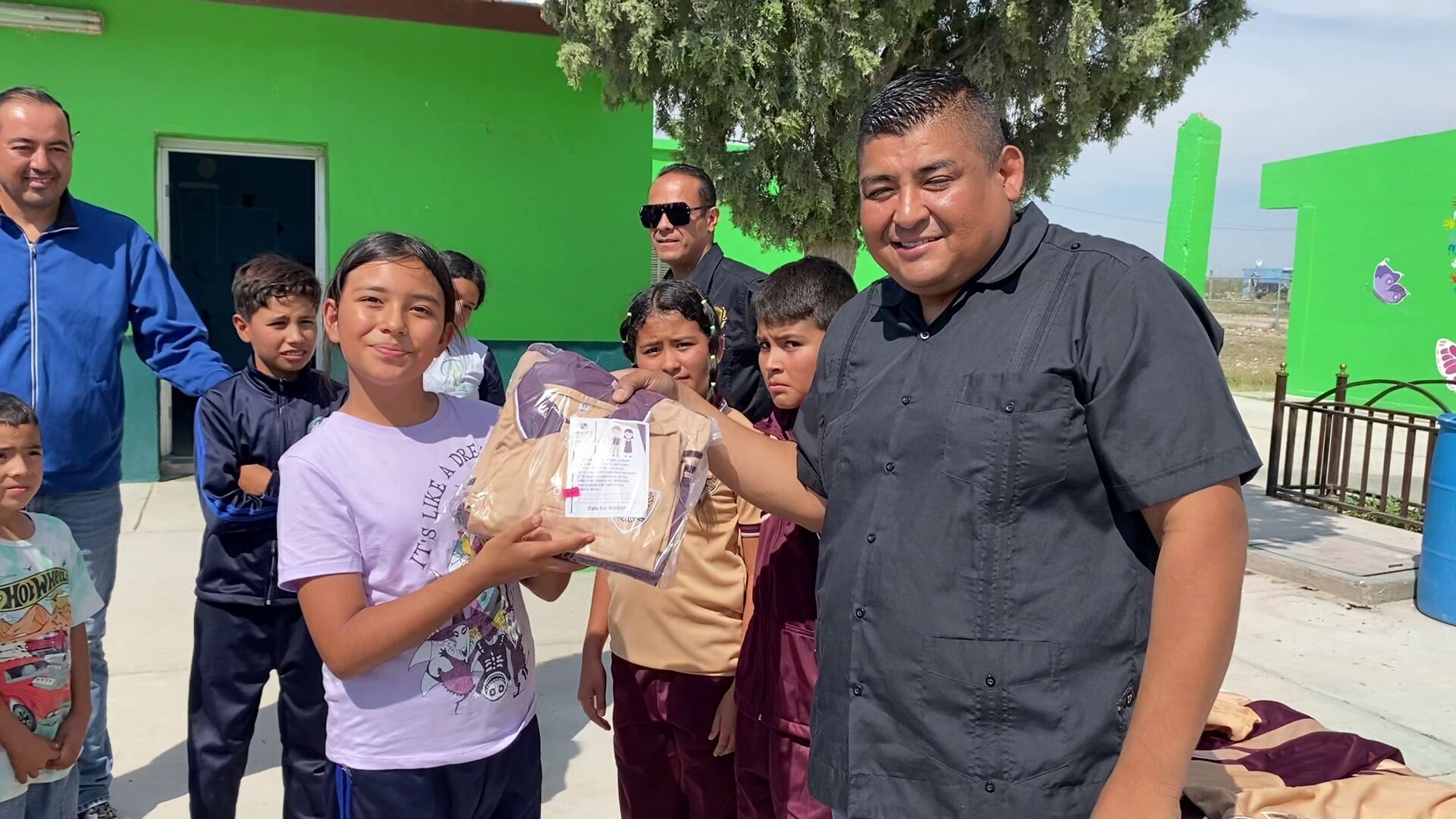 En esta ocasión, la entrega se realizó en la Escuela Primaria 24 de Febrero, ubicada en el Ejido Tierra Blanca, donde el presidente municipal hizo entrega directa de los uniformes a las y los alumnos, reafirmando su compromiso con la educación y el bienestar de las familias jimenenses.