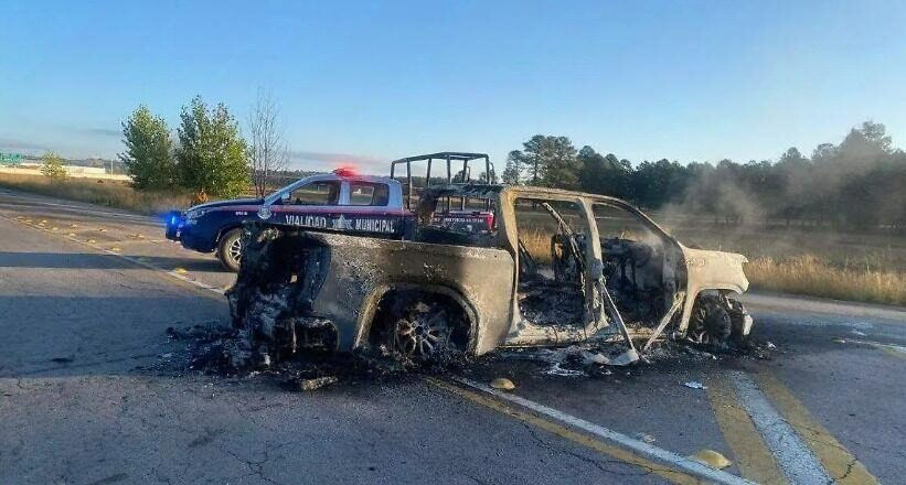 Con la luz del día, los agentes encontraron cuatro vehículos con señales de violencia, dos de ellos completamente calcinados y otros dos con impactos de bala. Las unidades aseguradas fueron: