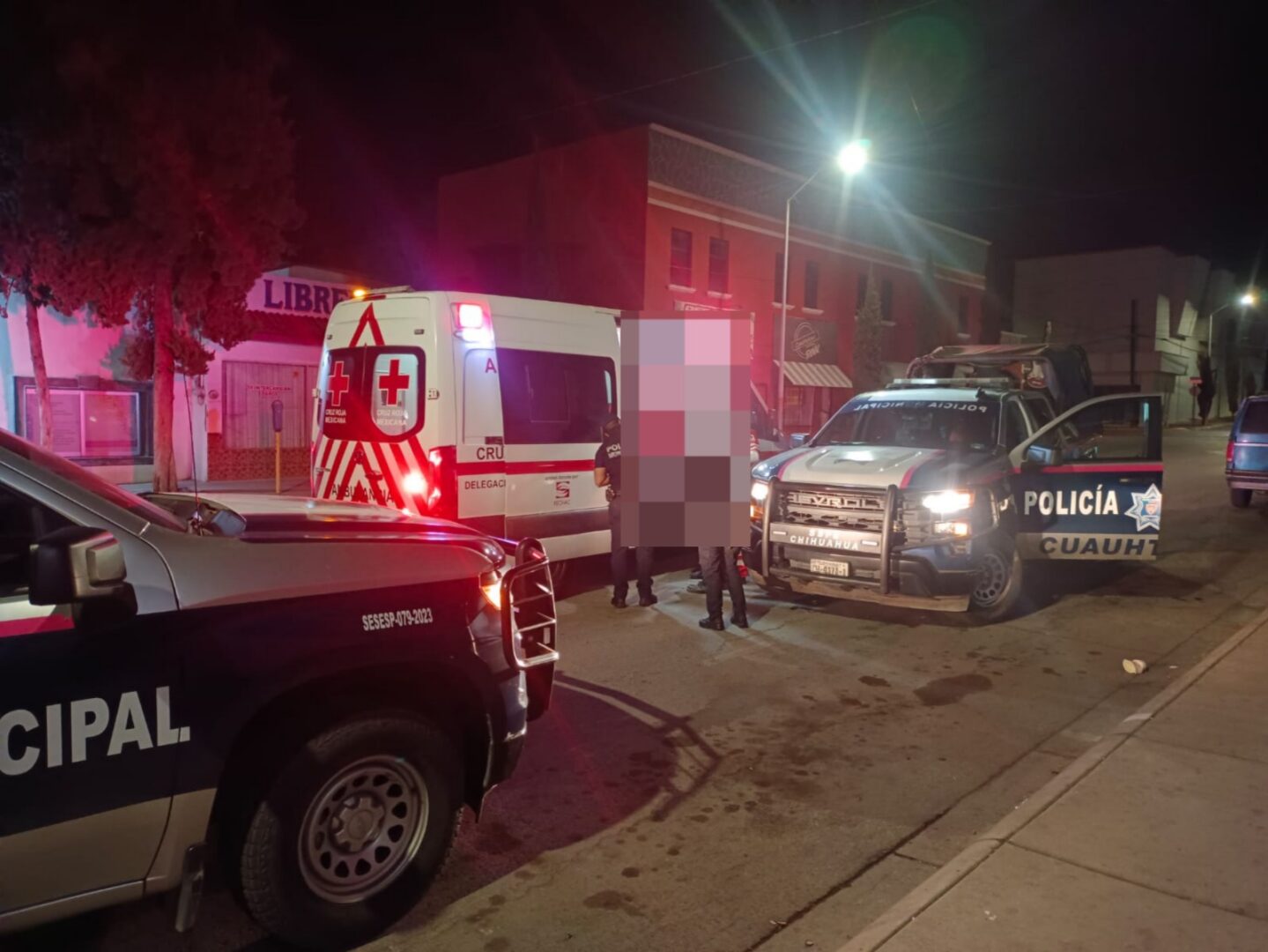 Tras la valoración inicial, los policías solicitaron apoyo de servicios médicos, arribando al lugar paramédicos de la Cruz Roja.