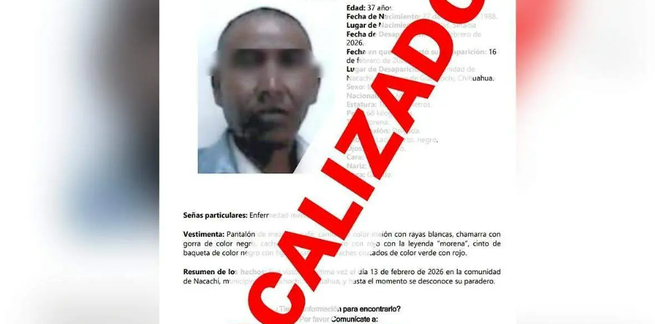 De acuerdo con el comunicado oficial, el reporte fue presentado el 16 de febrero del presente año, por lo que se activaron de inmediato los protocolos de búsqueda y localización correspondientes.