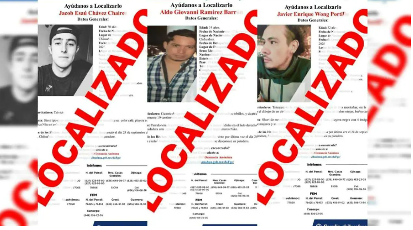 Ciudad Jiménez, Chih.— Tras varios días de incertidumbre y movilización de autoridades, la Fiscalía de Distrito Zona Sur confirmó que los tres hombres reportados como ausentes el 23 y 24 de septiembre en Ciudad Jiménez fueron localizados con vida y en buen estado de salud.