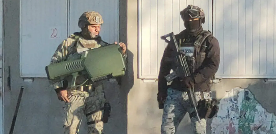Al exterior del penal, particularmente en la zona de Barranco Azul, se observó la presencia de elementos militares equipados con armamento especializado antidrones, tecnología diseñada para detectar e inutilizar dispositivos aéreos no autorizados.