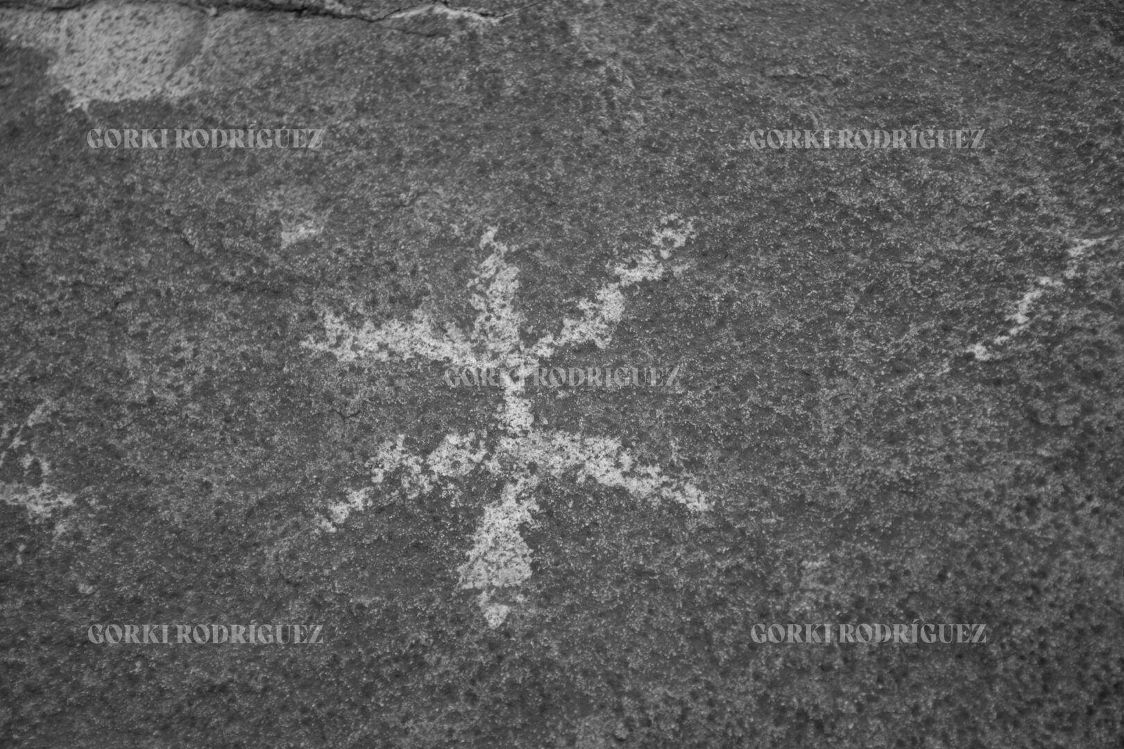 A un costado de las representaciones de cacería aparecen círculos concéntricos, cuya disposición geométrica puede interpretarse como símbolos solares o marcadores temporales relacionados con los ciclos del día. En otras piedras se observan tallas que asemejan arbustos o plantas endémicas de la región, posiblemente con uso medicinal o utilitario para los grupos nómadas.