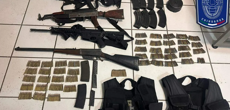 En el domicilio se aseguraron armas de alto calibre, municiones y equipo táctico, incluyendo: