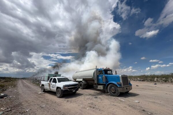 Atiende Servicios Públicos de Jiménez INCENDIO en el basurero municipal: Se trabaja a marchas forzadas.